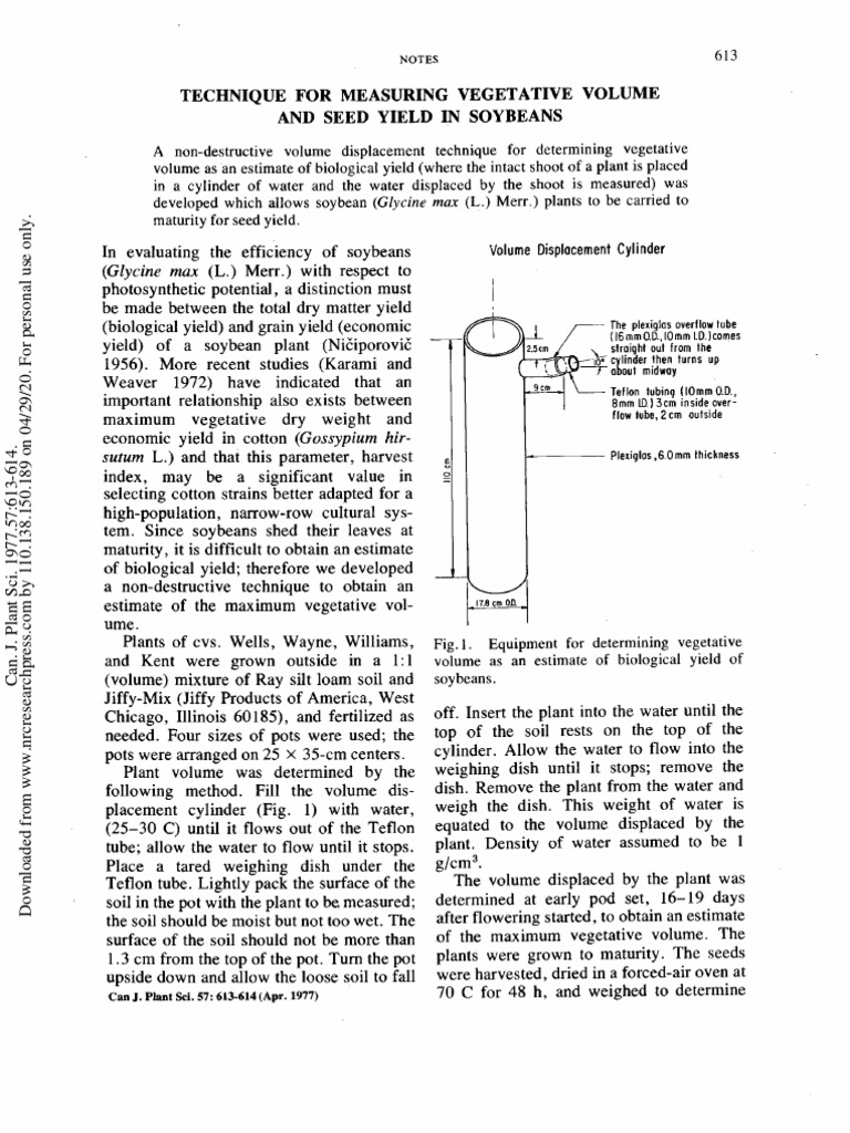 A non-destructive volume displacement technique for determining vegetative