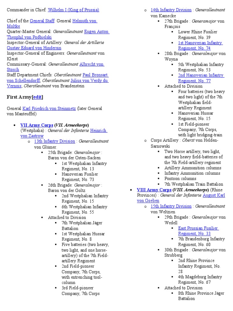 31st Brigade : Generalmajor o 1st Infantry Division : Generalleutnant