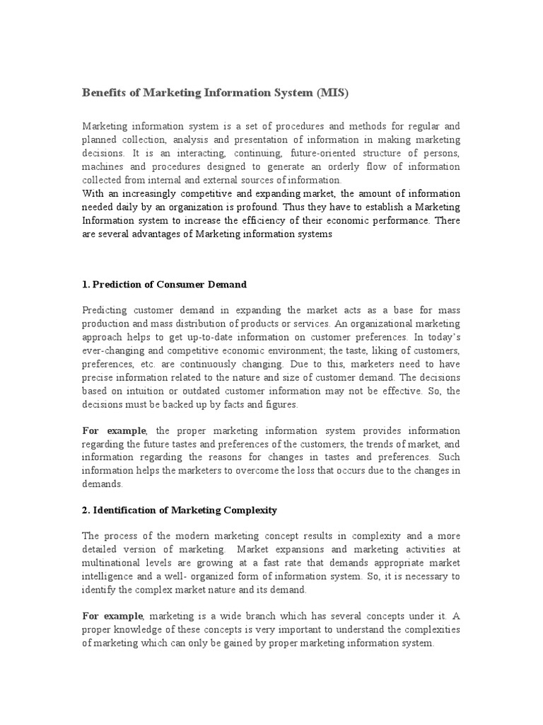 Benefits of Marketing Information System (MIS)
