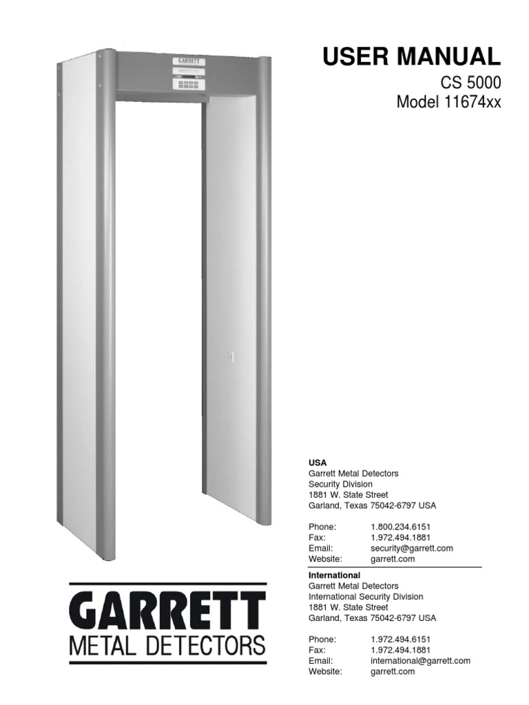 The Garrett CS 5000 Walk-Through Metal Detector features microprocessor-controlled circuitry and