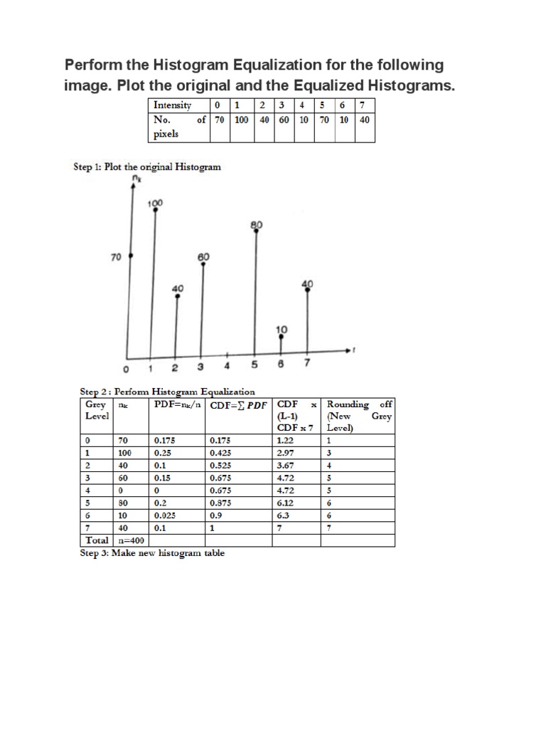 Perform the Histogram Equalization for the following