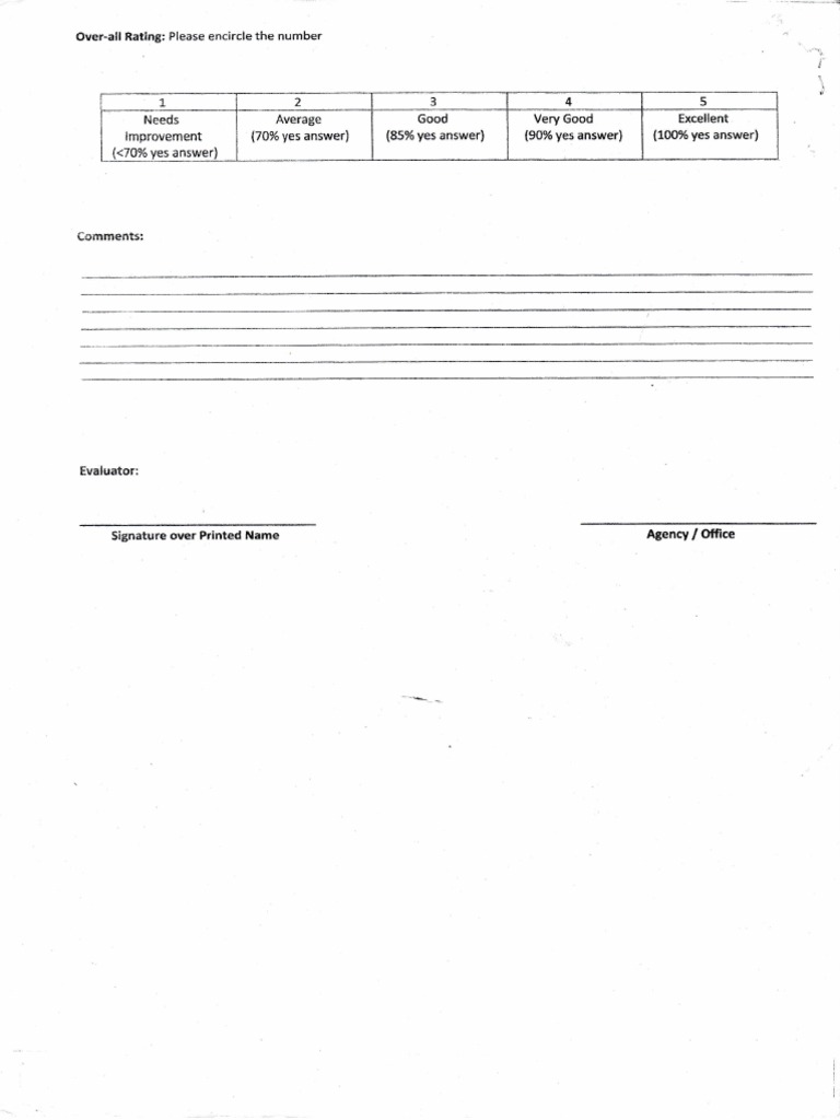 Over-all Rating: Please encircle the number