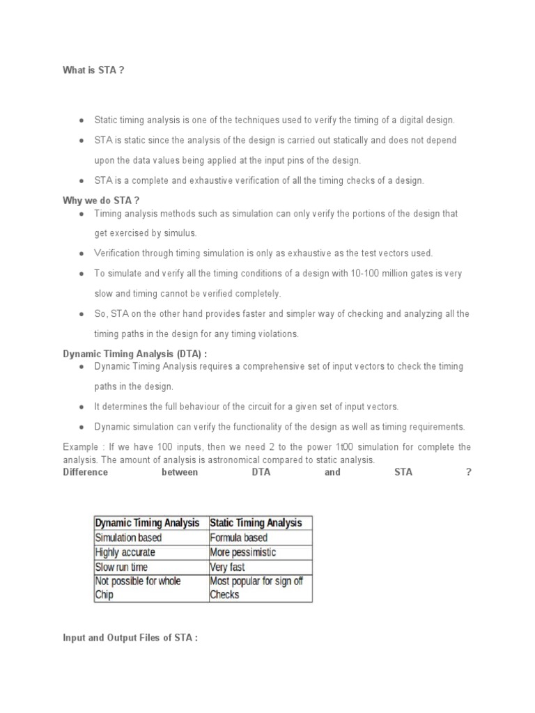 ● STA is a complete and exhaustive verification of all the timing checks of a design.