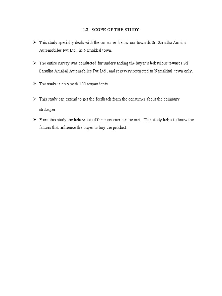 consumer behavior of Sri Saradha Amabal Automobiles Pvt Ltd., Namakkal for three months.