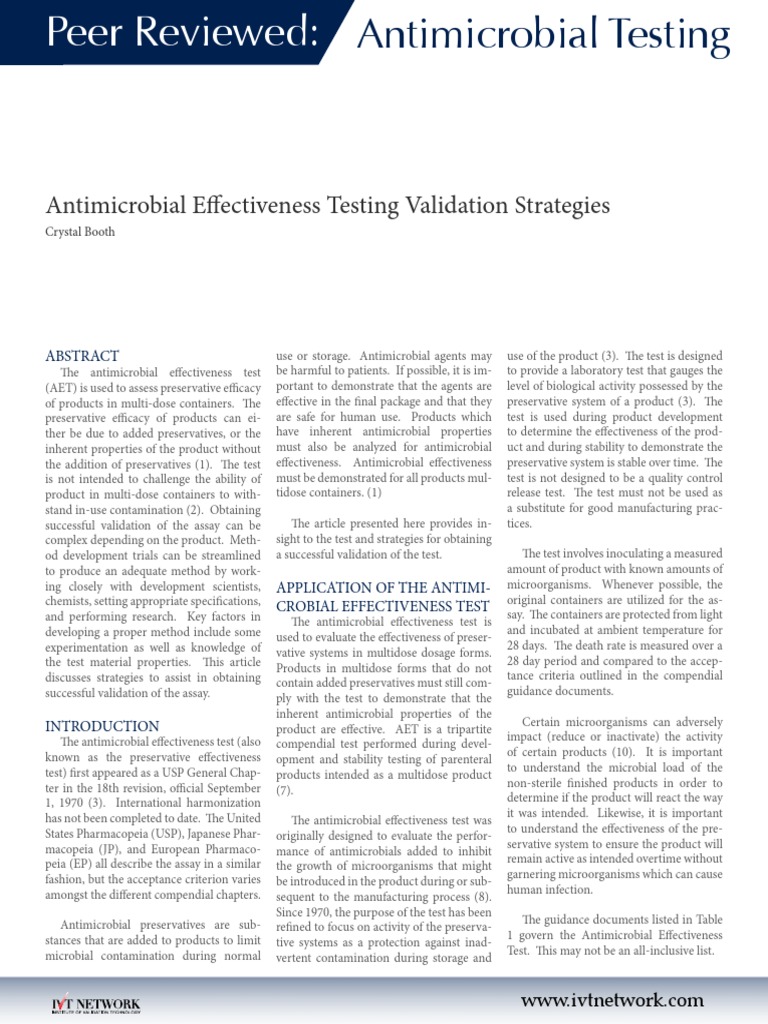 the addition of preservatives (1). The test effectiveness. Antimicrobial effectiveness preservative system is stable over time. The