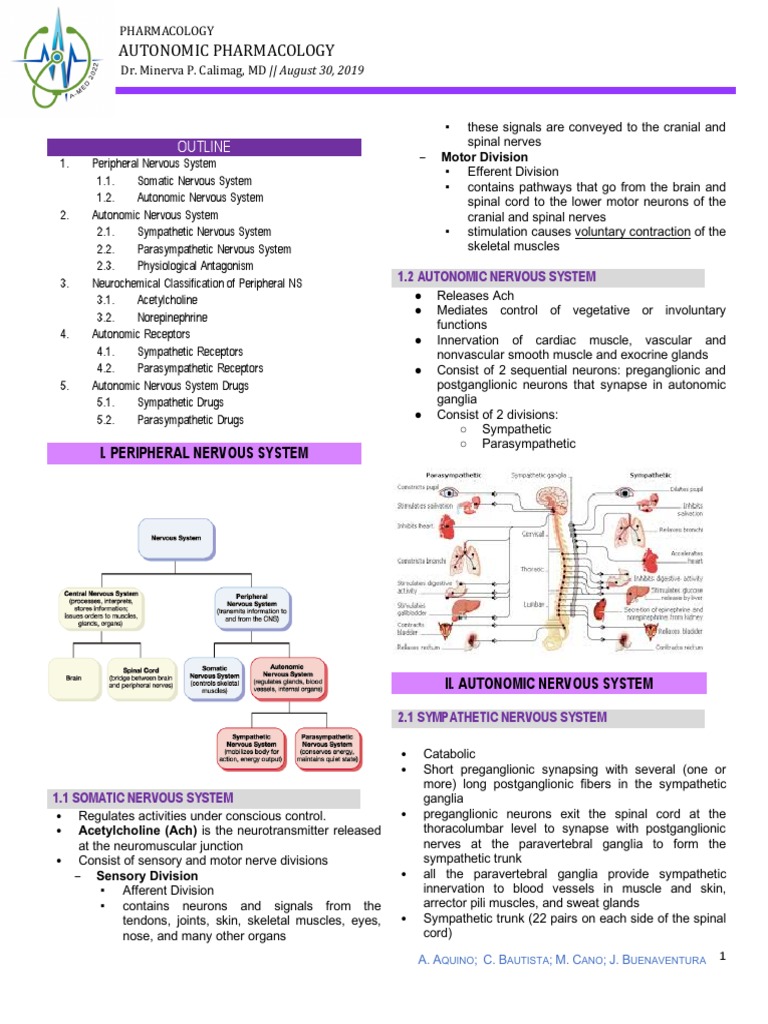 3. Neurochemical Classification of Peripheral NS 1.2 AUTONOMIC NERVOUS SYSTEM