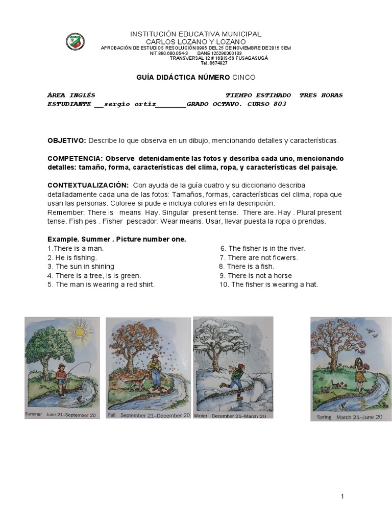 ESTUDIANTE __sergio ortiz_______GRADO OCTAVO. CURSO 803