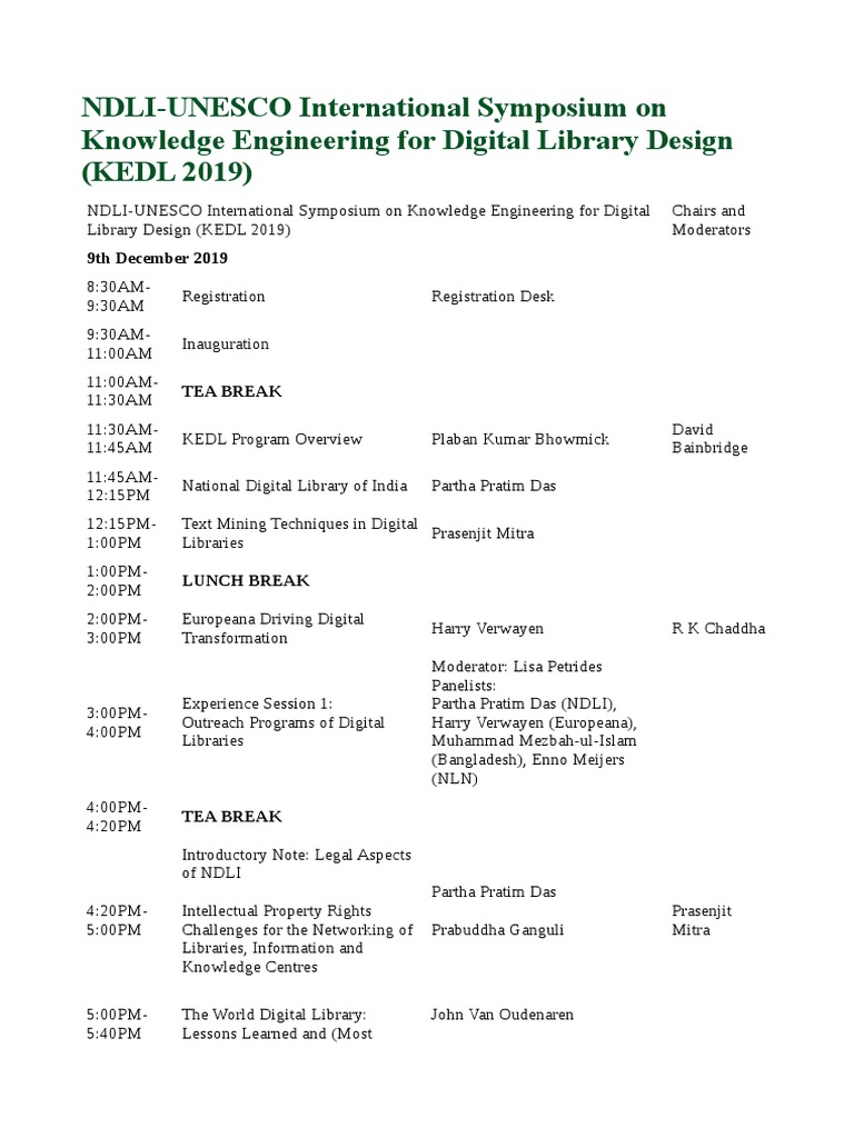 NDLI-UNESCO International Symposium on Knowledge Engineering for Digital Chairs and