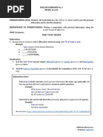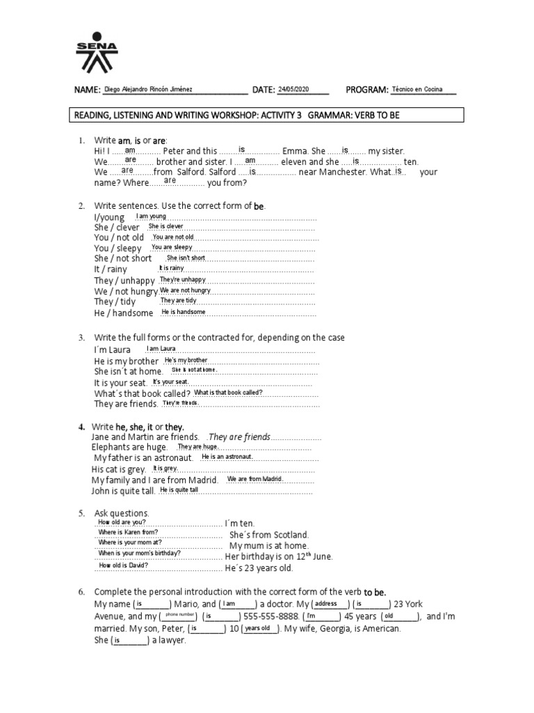 READING, LISTENING AND WRITING WORKSHOP: ACTIVITY 3 GRAMMAR: VERB TO BE