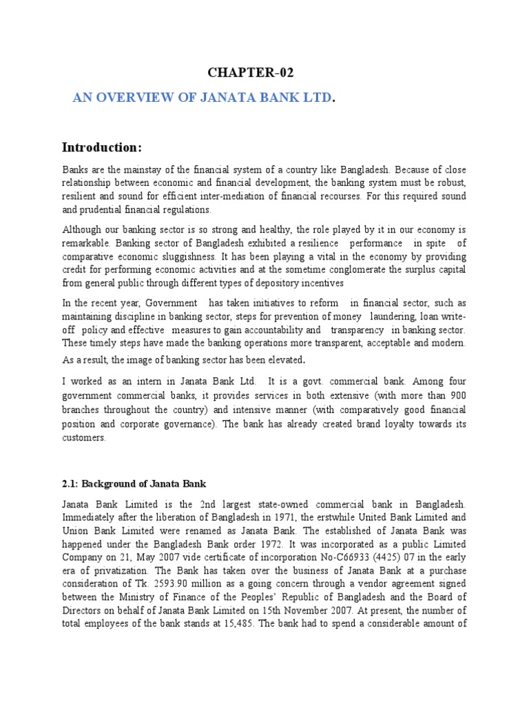 I worked as an intern in Janata Bank Ltd. It is a govt. commercial bank. Among four
