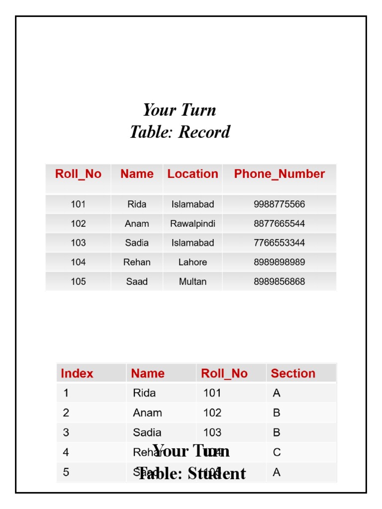 • Display NAME, LOCATION, PHONE_NUMBER of the
