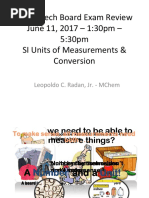 1. What are the standard units of length, mass, volume, and temperature in the metric (SI)