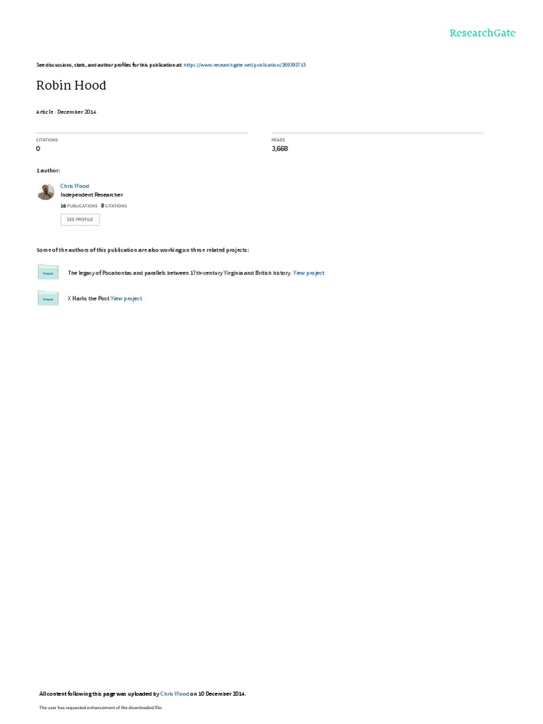 Baldwin, David (2011) Robin Hood: The English Outlaw Unmasked, Amberley.