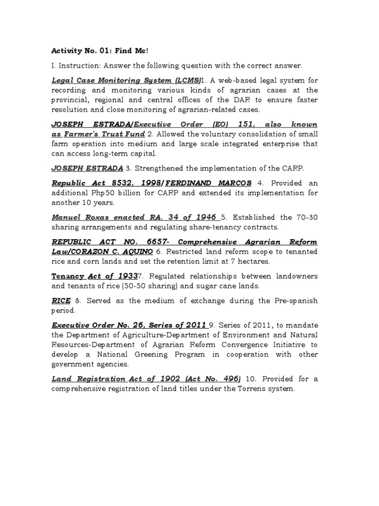 REPUBLIC ACT NO. 6657- Comprehensive Agrarian Reform