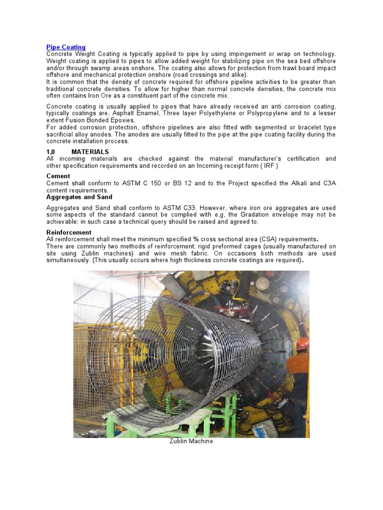 Concrete coating is usually applied to pipes that have already received an anti corrosion coating,