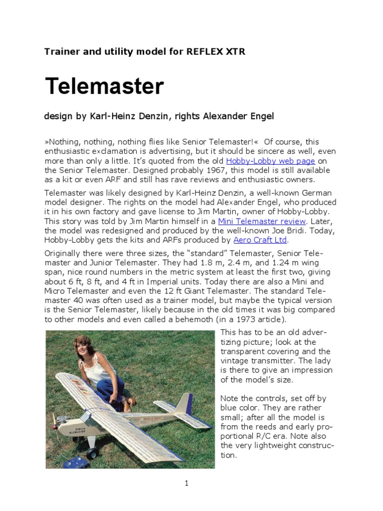 Senior Telemaster. Aero Craft Ltd currently produces Telemasters for Hobby-