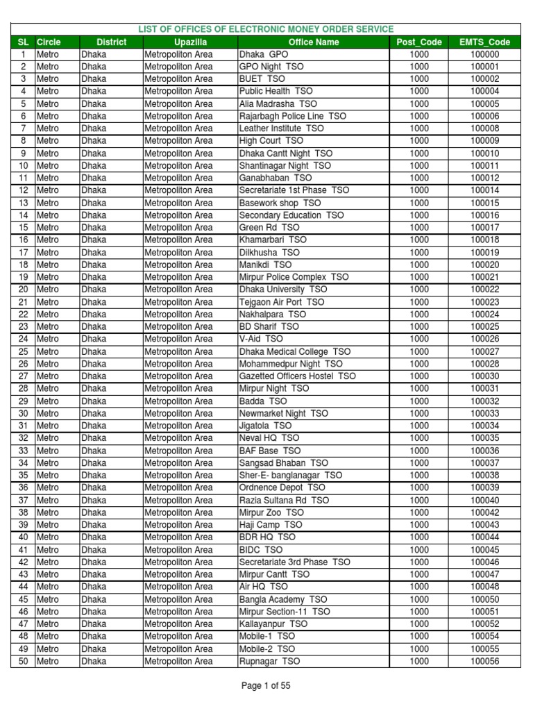 SL Circle District Upazilla Office Name Post_Code EMTS_Code