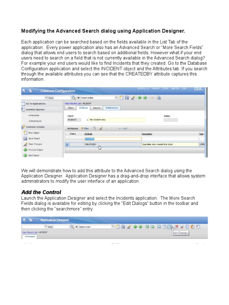 Modifying the Advanced Search dialog using Application Designer.