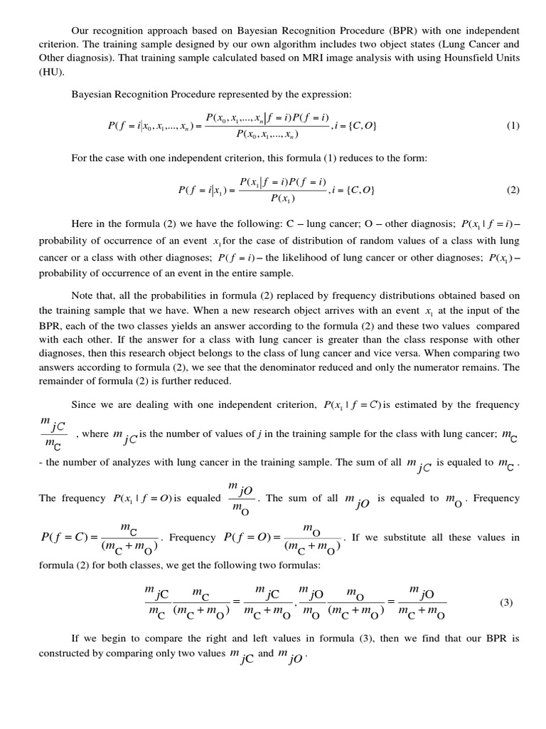 Here in the formula (2) we have the following: C – lung cancer; O – other diagnosis; P( x1 | f i) –