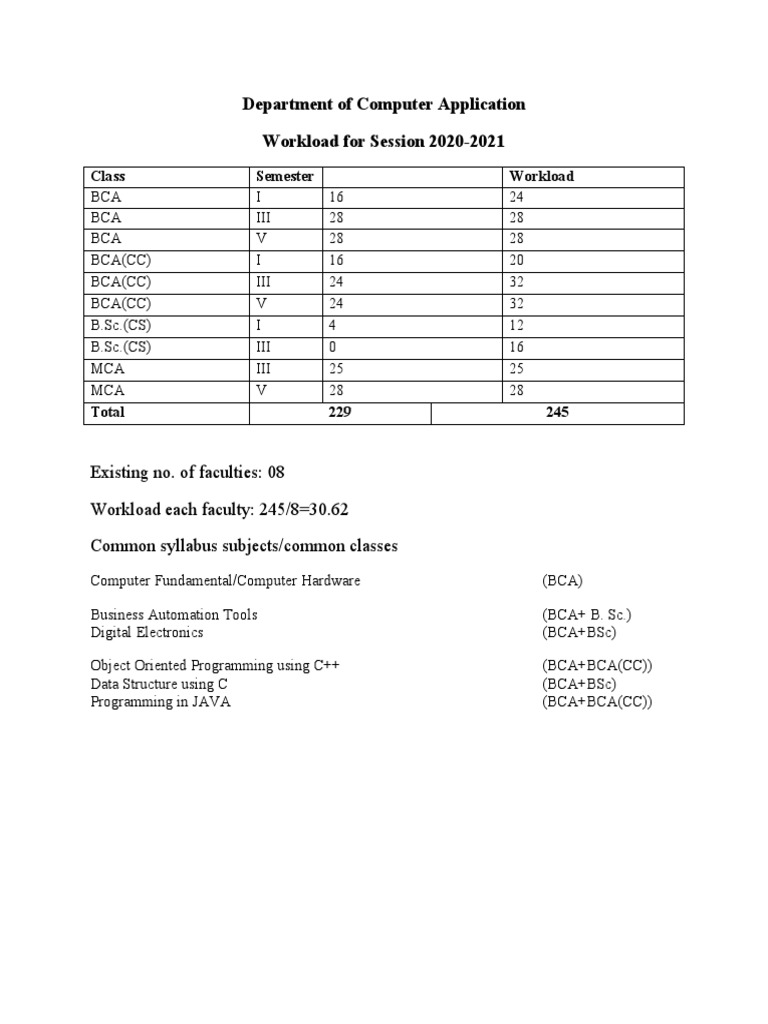 Workload for Session 2020-2021