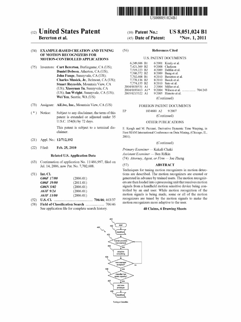 Motion Recognizers Tuning Patent