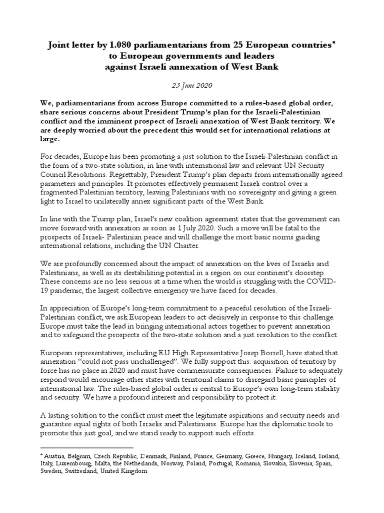 Joint letter by 1.080 parliamentarians from 25 European countries