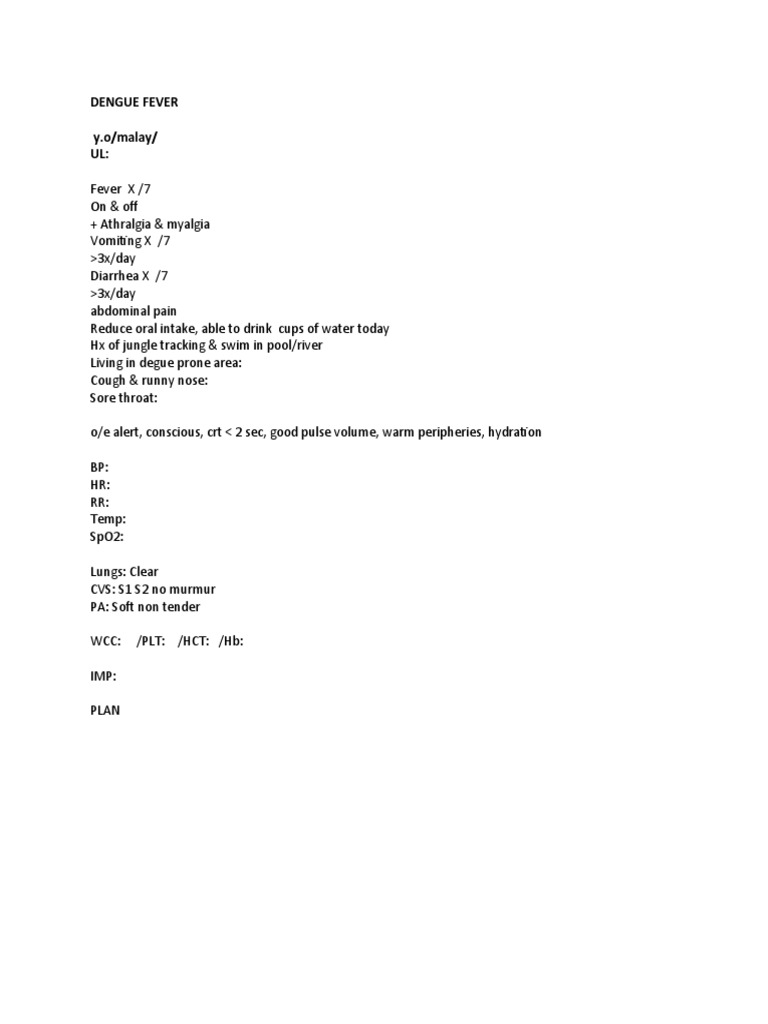 o/e alert, conscious, crt < 2 sec, good pulse volume, warm peripheries, hydration