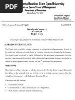 The document provides project guidelines for MBA 5th semester students of Krishna Kanta Handiqui State Open University. It outlines the objectives, timeline, fees, types of projects, proposal requirements, role of the project guide, report structure, submission process, and presentation guidelines. The key details are: 1) The objective is to help students apply concepts to solve organizational problems or develop new frameworks. Projects must be in the MBA specialization area. 2) Students must submit their proposal by January 31st and the viva voce will be held from August 1st to 10th. 3) A Rs. 1000 fee is required to be submitted along with the project report.