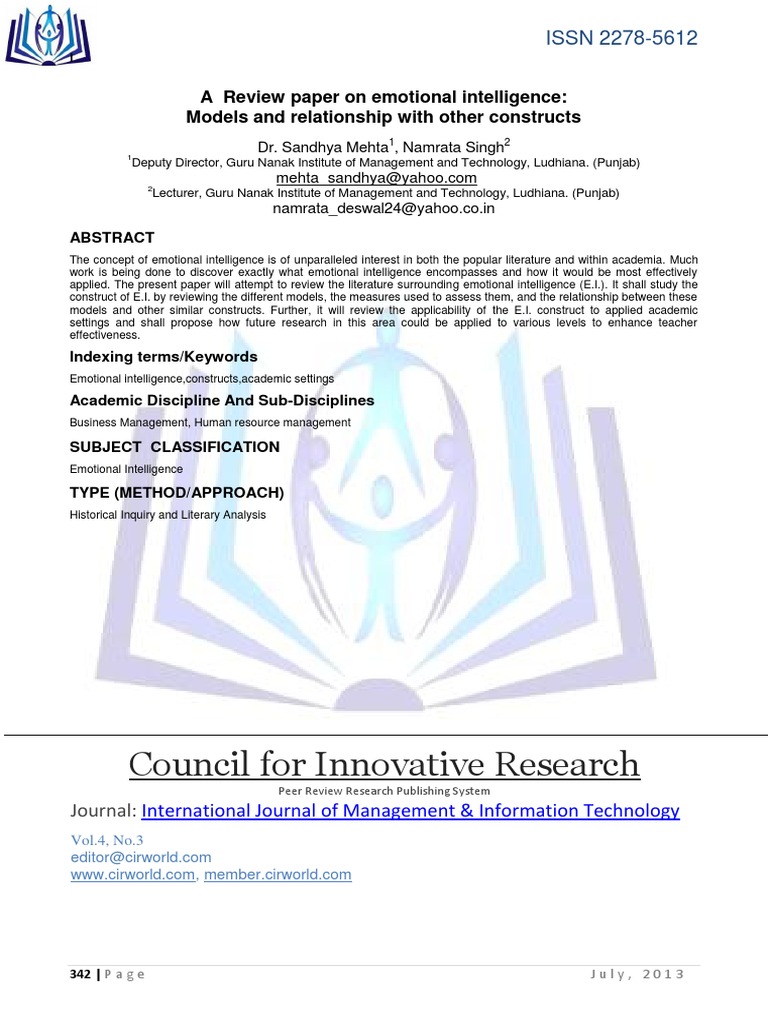 applied. The present paper will attempt to review the literature surrounding emotional intelligence (E.I.). It shall study the