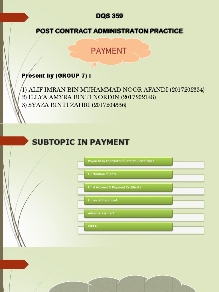 Interim Payment are defined as a sum payable to the contractor on a regular