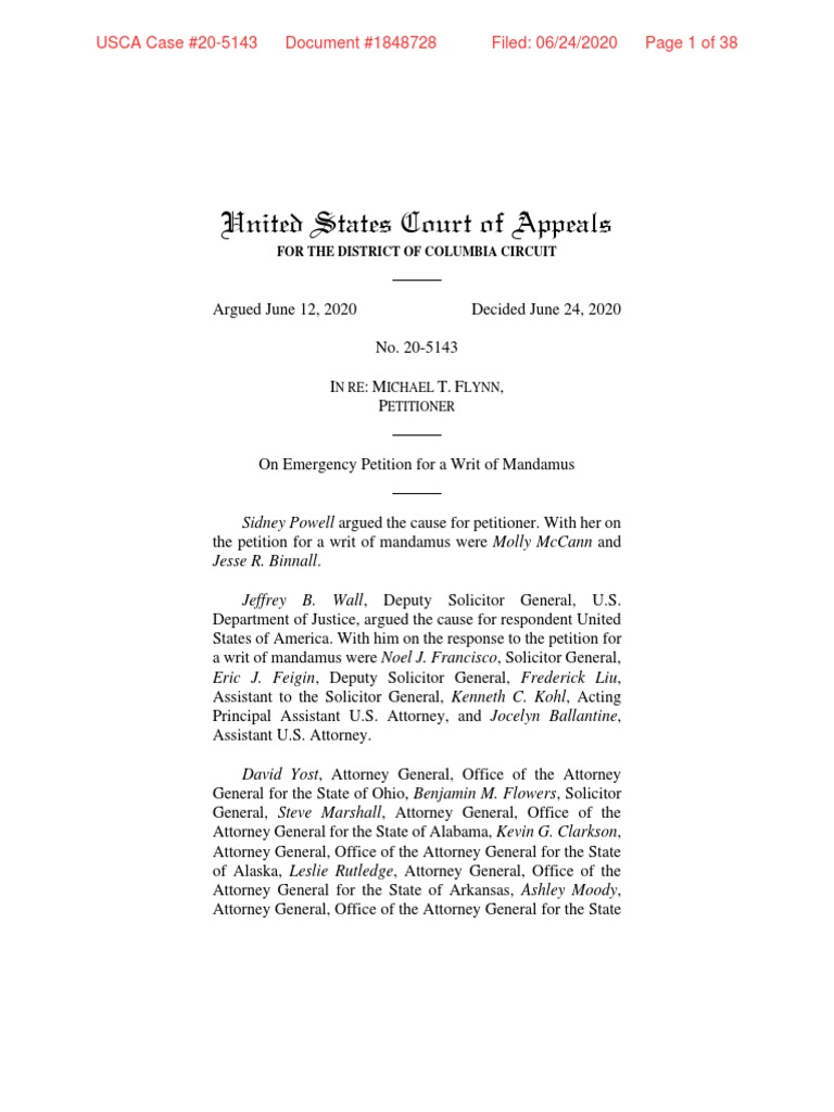 A federal appeals court has ordered a district judge to grant the Justice Department's request to drop the criminal case against former national security adviser Michael Flynn, bringing the extraordinary legal battle over the department's handling of the case closer to an end.