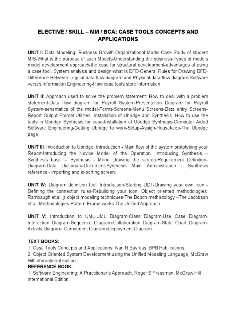 ELECTIVE / SKILL – MM / BCA: CASE TOOLS CONCEPTS AND