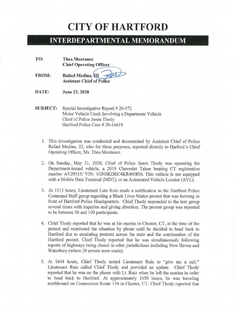 Hartford protest. Chief Thody reported that he was simultaneously following