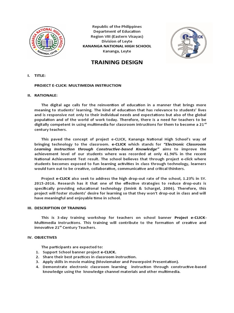 This is 3-day training workshop for teachers on school banner Project e-CLICK-