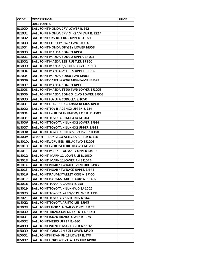 CODE DESCRIPTION PRICE