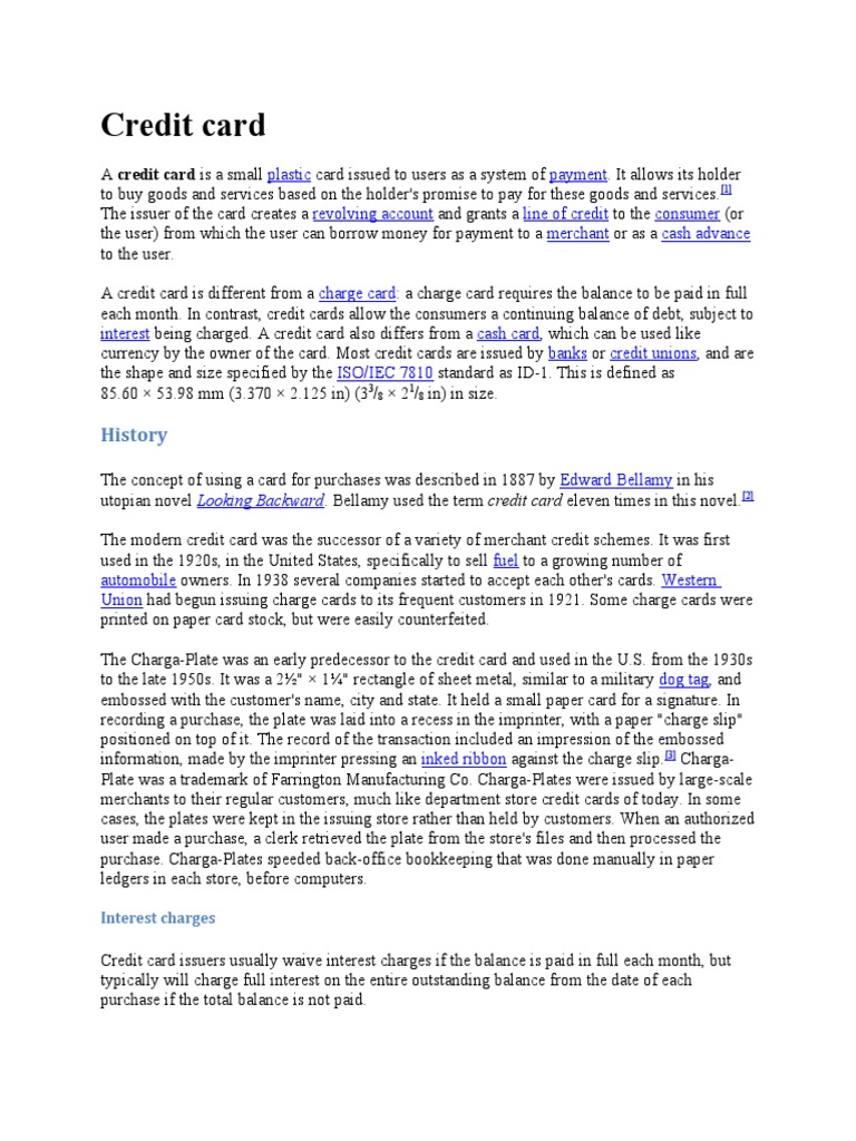 utopian novel Looking Backward. Bellamy used the term credit card eleven times in this novel.[2]