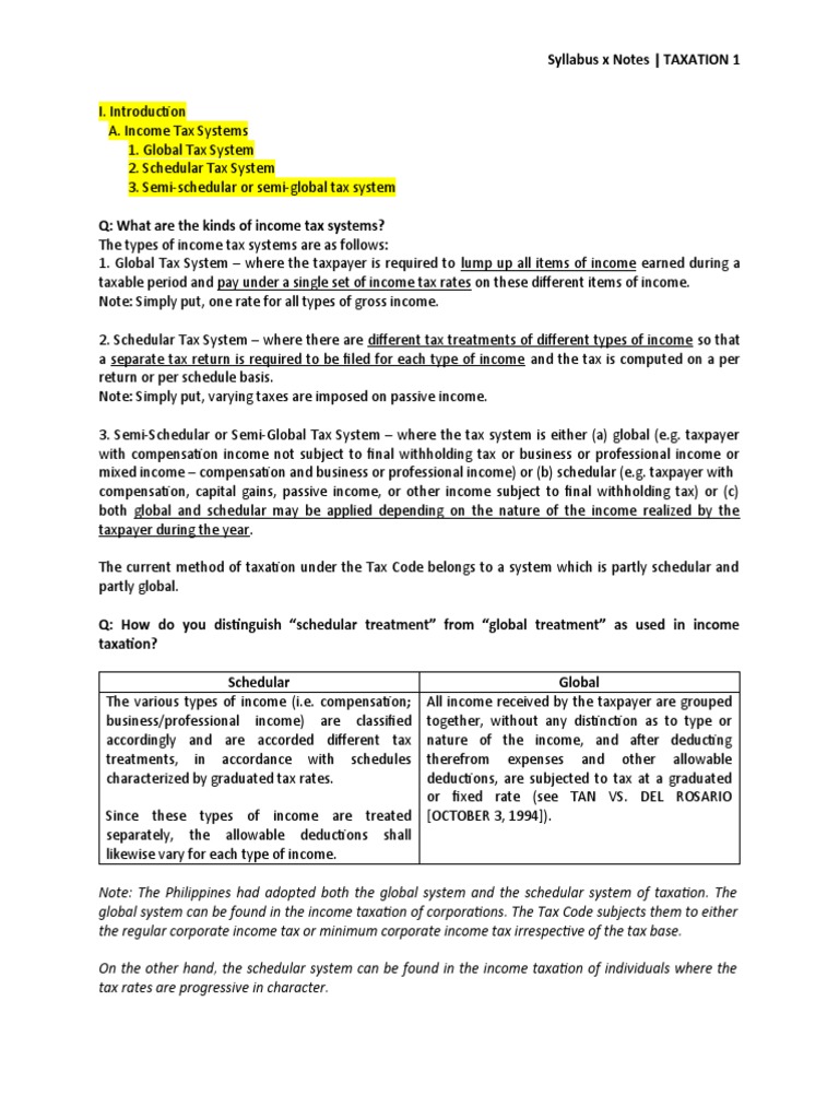 Note: The Philippines had adopted both the global system and the schedular system of taxation. The