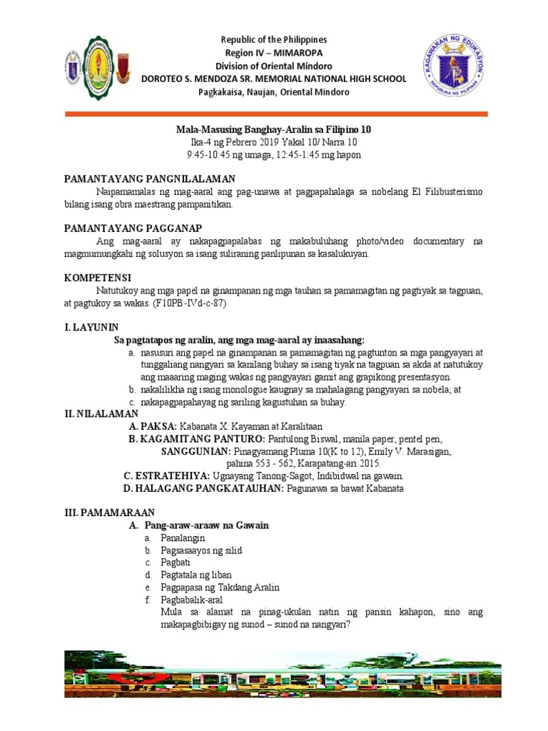 Mala-Masusing Banghay-Aralin sa Filipino 10