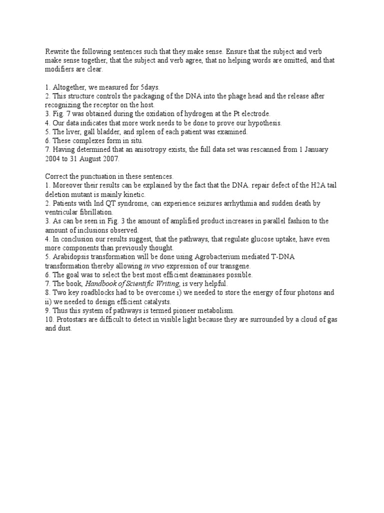 make sense together, that the subject and verb agree, that no helping words are omitted, and that