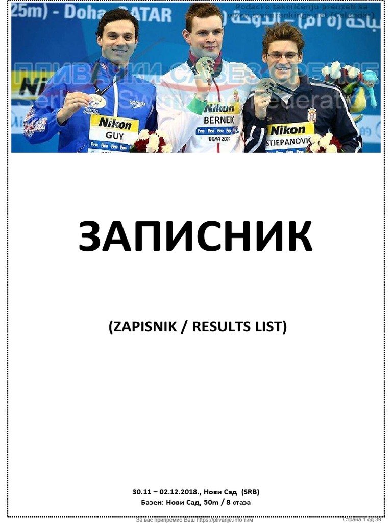 Splash Meet Manager, 11.56278 Registered to Plivacki Savez Srbije 1/12/18 17:39 - Page 1