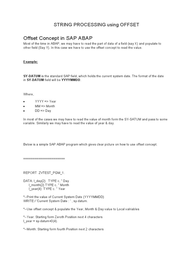Offset Concept in SAP ABAP