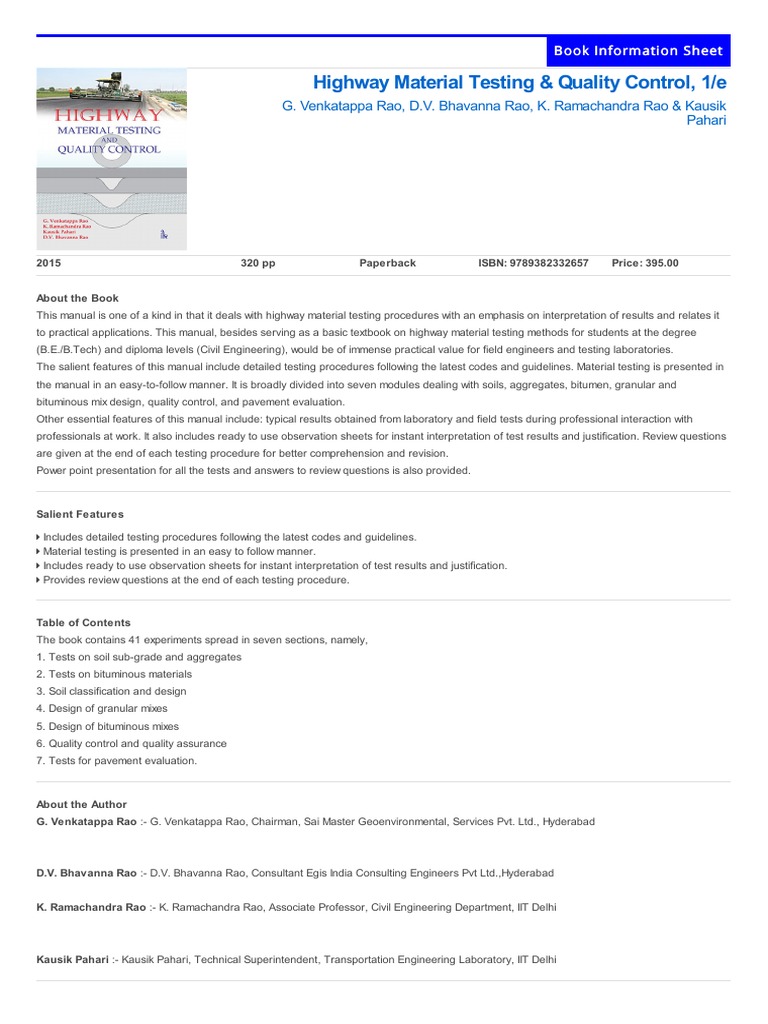 It includes testing of highway materials very systematically and the concept of these experiments are very well defined.