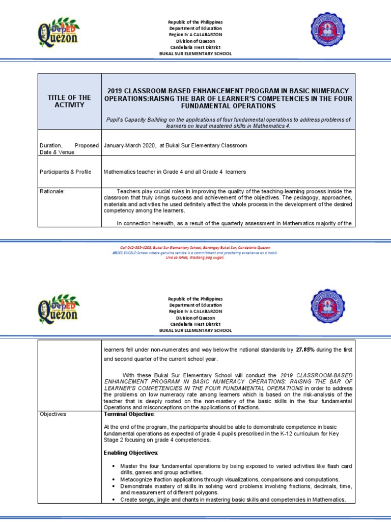 2019 CLASSROOM-BASED ENHANCEMENT PROGRAM IN BASIC NUMERACY