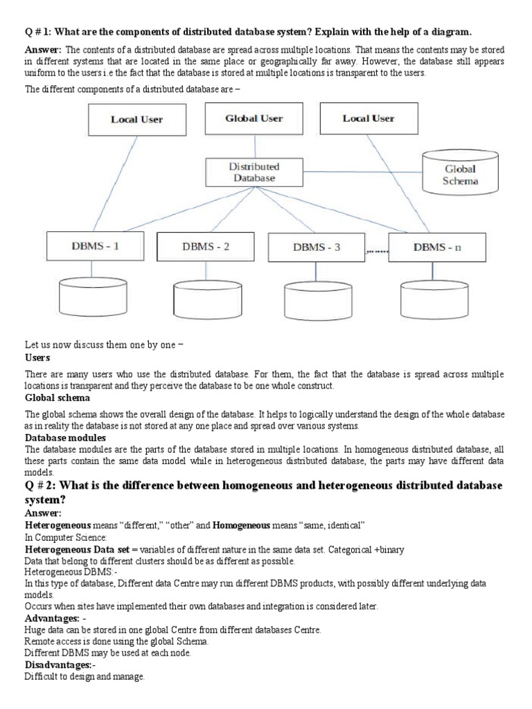 Q # 1: What are the components of distributed database system? Explain with the help of a diagram.