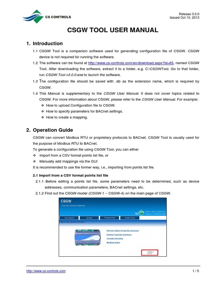1.2 The software can be found at http://www.cs-controls.com/en/download.aspx?id=65, named CSGW