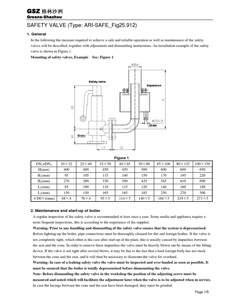 Warning: Prior to any handling and dismantling of the safety valve ensure that the system is depressurised.