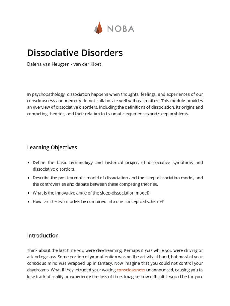 • Describe the posttraumatic model of dissociation and the sleep-dissociation model, and