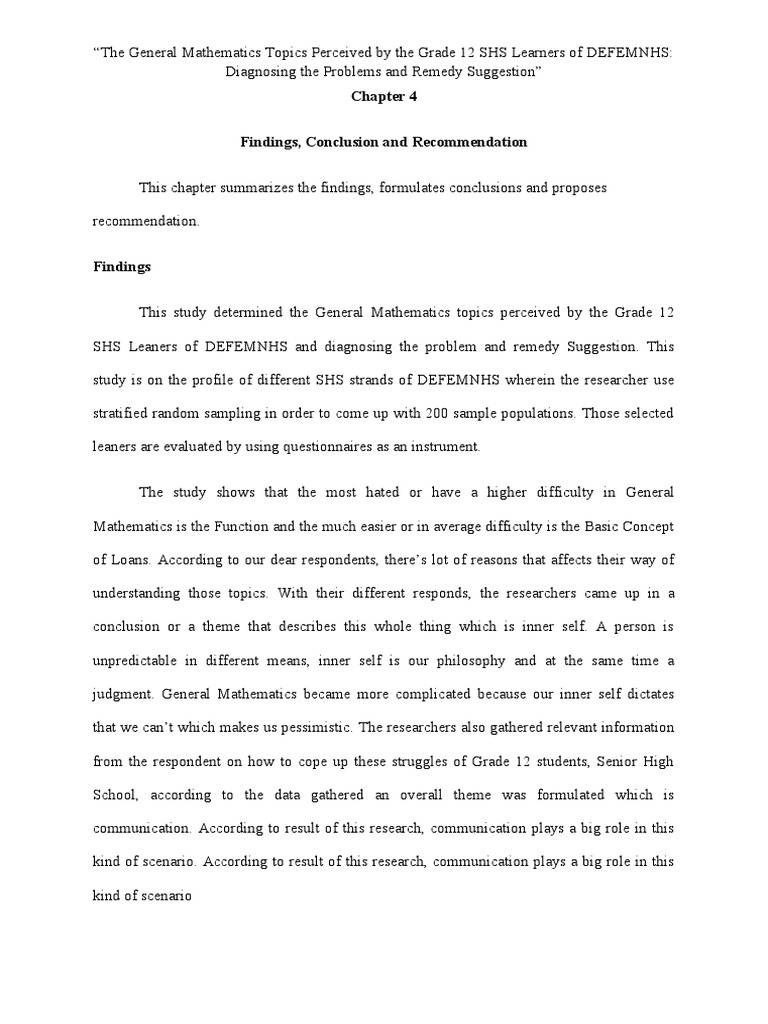 “The General Mathematics Topics Perceived by the Grade 12 SHS Learners of DEFEMNHS: