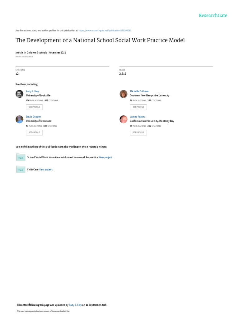 Frey et al. / The Development of a National School Social Work Practice Model 3