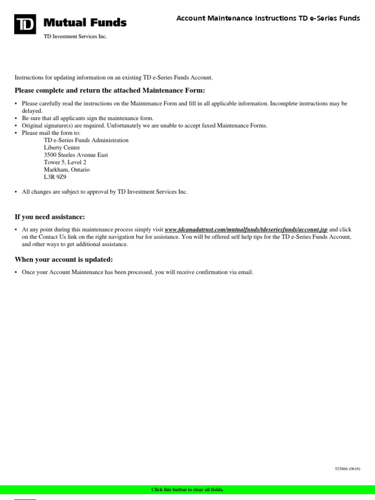 Please fill in only the information you would like us to change on your TD e-Series Funds Account.